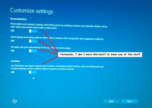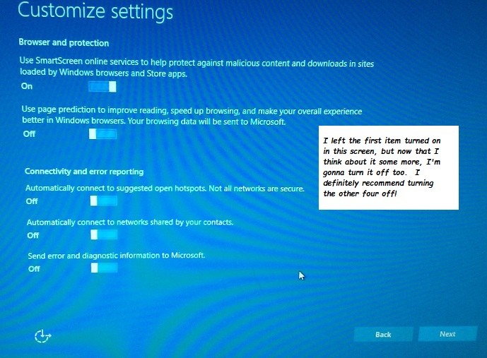 On the next page, "Customized Settings", I recommend turning all four options to "off".