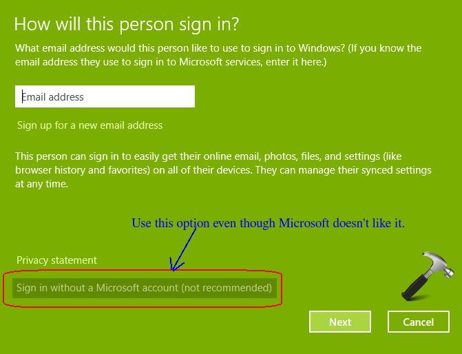 Windows 10 Will Not Allow You to Add Local User Accounts Without A Microsoft Account