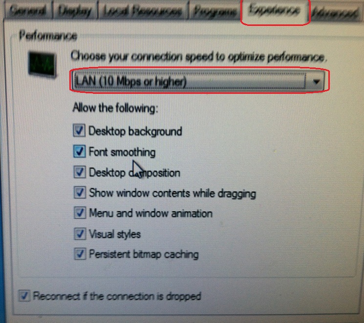 2. From the "Experience" tab, choose the "LAN (10Mbps or higher)" from the drop-down box. (Notice that this checks all the boxes.)