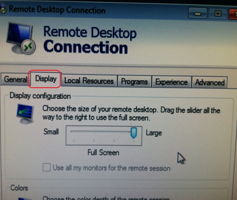 1. Open the RDP session and click on the "Options" button.