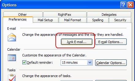 2. Click on Tools > Options > Preferences > Junk E-mail.