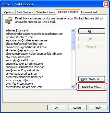 8. Find out from your support staff if there is a procedure in place for dealing with junk email addresses. Attach a copy of the exported file so they have the list.