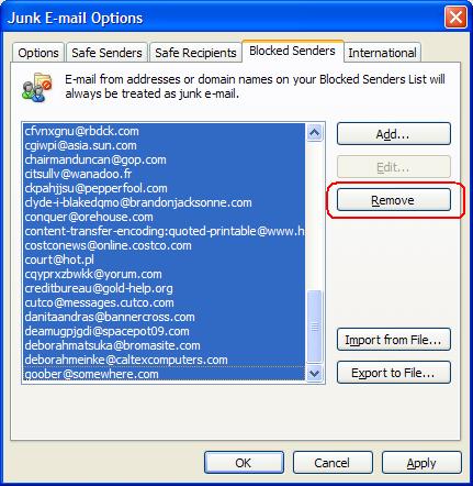 Cleaning up the Junk E-mail List