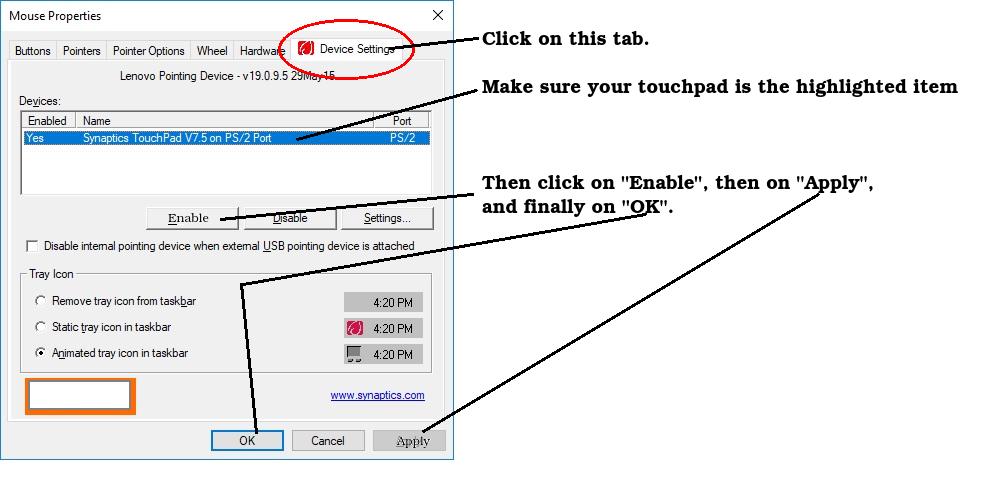 6. Make sure your touchpad is the item highlighted in the list (it may be the only item listed)