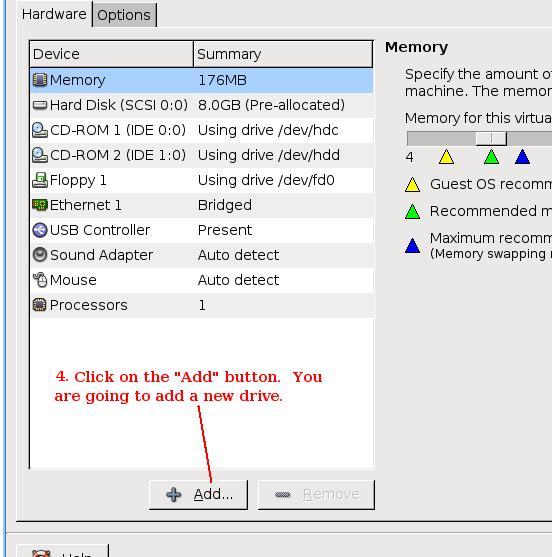 4. Click on the "Add" button. You are going to add a new hard drive.