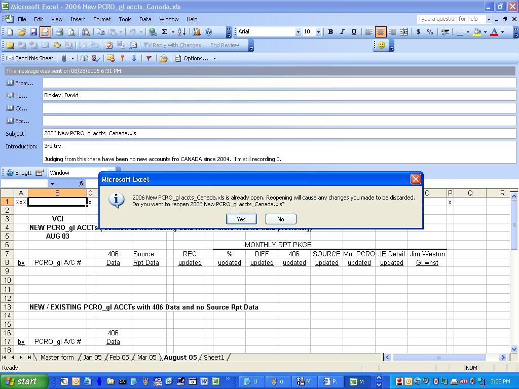 000154 | An Excel file that is shared by multiple users on the network gives a Dr. Watson error when anyone tries to open it and it fails to open. | Suspect someone with newer version of Excel is opening it, editing it, and saving it in the newer format. | Open the file with the newer version and resave it in the older format. |