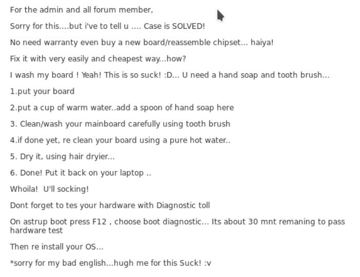 000132 | Dell Gx1 was hanging on boot during POST tests when it reached the onboard 3Com NIC. Gave error message and option to F1 for reboot or F2 for Setup. User also reported that system hung just before this. | I'm guessing the onboard NIC is going bad or just got some signal from the switch that confused it momentarily. (Maybe somebody was in the closet and temporarily/unintentionally disconnected her cable?) | Powered down her PC, disconnected LAN cable, booted into BIOS and disabled onboard NIC. Then rebooted successfully into Windows, shutdown PC, reconnected cable, booted into BIOS, reenabled onboard NIC, and rebooted without incident. |
