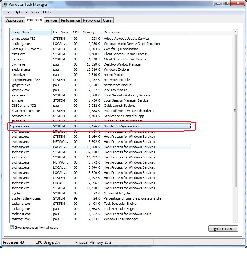 00041 | Can't remove printer drivers. | If HP Jetadmin utils have been installed, you may not be able to remove printer drivers from Control Panel/Printers. If you check the Task Manager (Ctrl+Alt+Del) and you see "HPPROPTY" you know this utility is installed and running, and needs to be removed. | Check Technet article Q190628 or go to this link REMVJET.TXT |