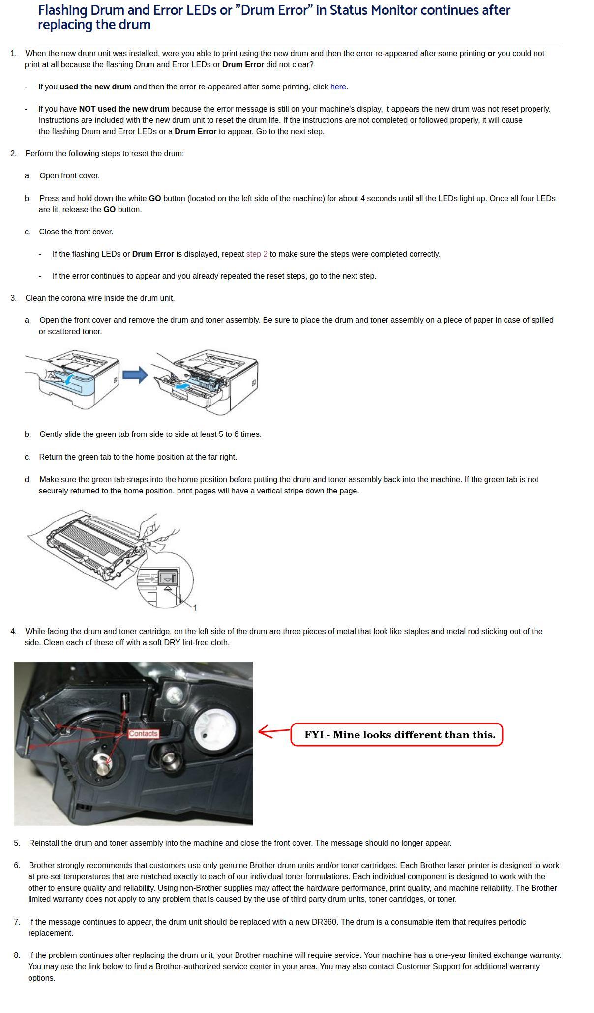 My Brother HL-2270DW laser printer kept failing to print with the "Error" and "Drum" lights flashing. Sometimes it would print a page that would get stuck before those lights started flashing. | The drum needed some attention. | Cleaning the drum per these instructions fixed my problem: Brother-HL2270DW-fix.jpg |