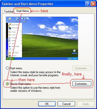 Choose the "Start Menu" tab and check the "Classic Start Menu" item if it's not already.