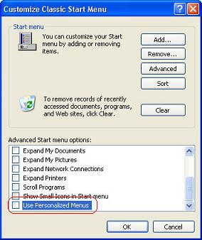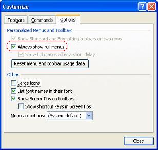 Uncheck the "Used Personalized Menus" item. Click on OK and you're done with the first half of this tip.