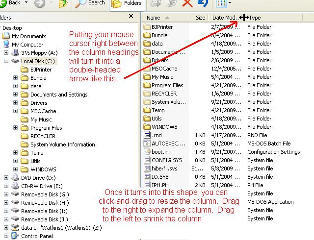 Most programs in Windows that have columns of information will allow you to do this. If you want to try it, open up "My Computer" (alias "Windows Explorer") and change the view to "Details" if you need to. Then experiment adjusting the width of your columns. Enjoy!