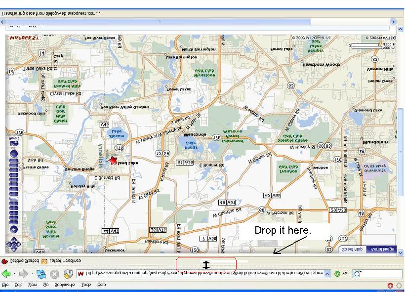 ) from the top on the left. Now click somewhere near the middle of the map and keep the button down on your mouse. Drag the mouse so the map scrolls until you have the Moraine Hills State Park in the upper left-hand portion of the screen, then drop it (let go of the mouse button). That alone is a cool trick that Mapquest has, but that's not our weekly tip. It's just an extra.