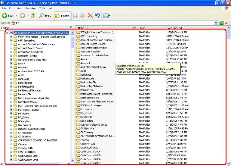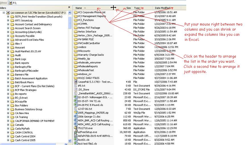 folders in a variety of ways. Clicking on the "Name" header will arrange alphabetically. Clicking a second time will